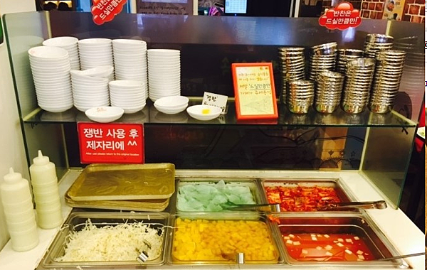等待期間可以到外面取小菜,有泡菜,椰菜絲(加沙津醬才不會苦)
